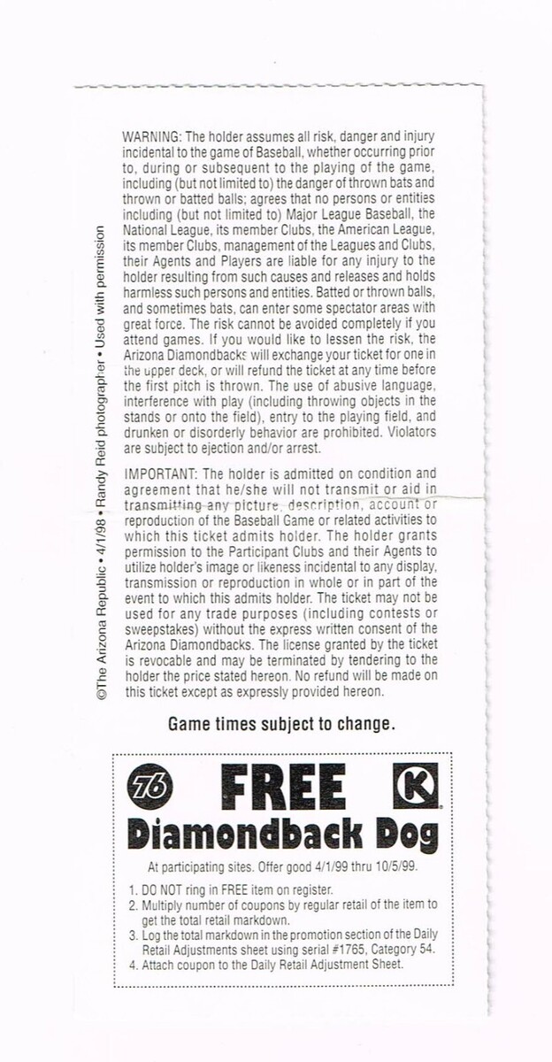Jose Jimenez No Hitter 6/25/99 Cardinals @ Diamondbacks Ticket Stub Johnson