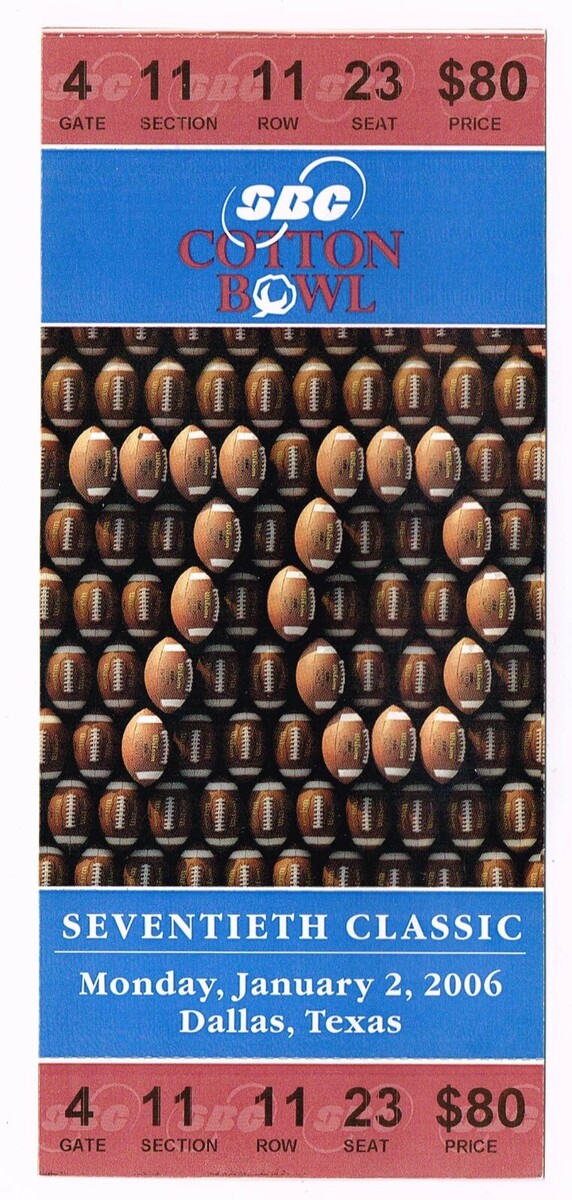 2006 Cotton Bowl Game Full Ticket Alabama Crimson Tide Texas Tech Red Raiders