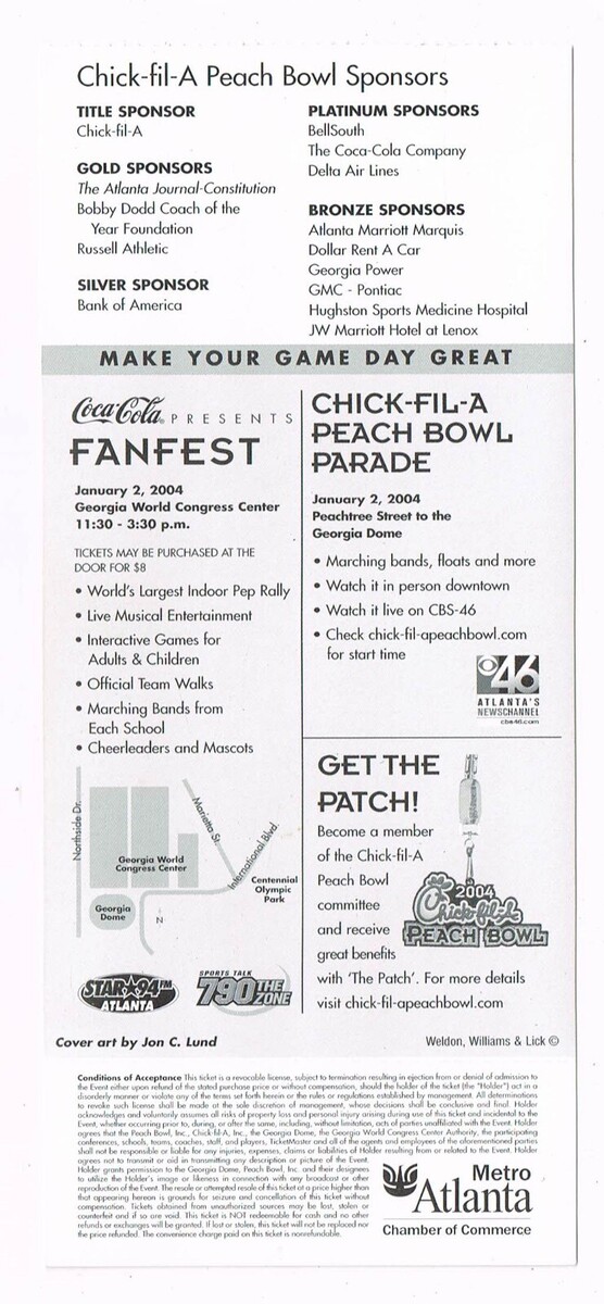2003 Chick Fil A Peach Bowl Ticket Full and 50 similar items