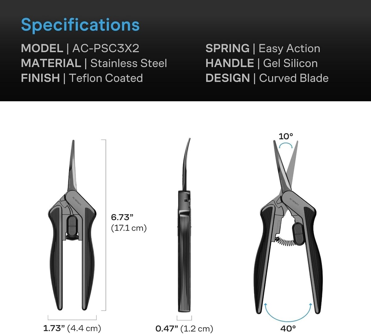 Features: Ergonomic Grip,Curved Precision Blades,Nonstick Teflon Coating,Lightweight Body,Built-in Safety Lock,Spring-loaded Handles,Precision-ground Edges,Reduces Hand Fatigue