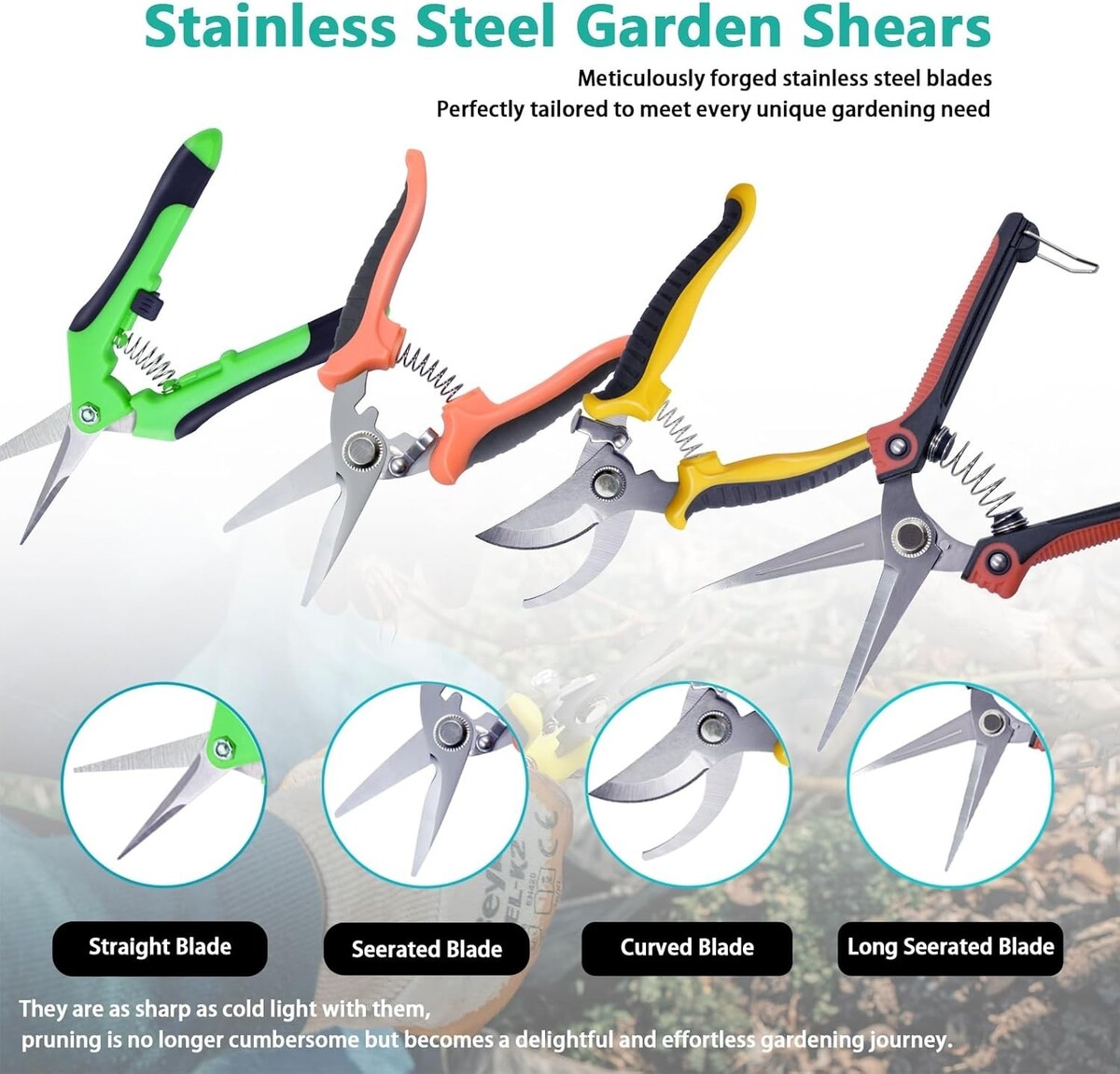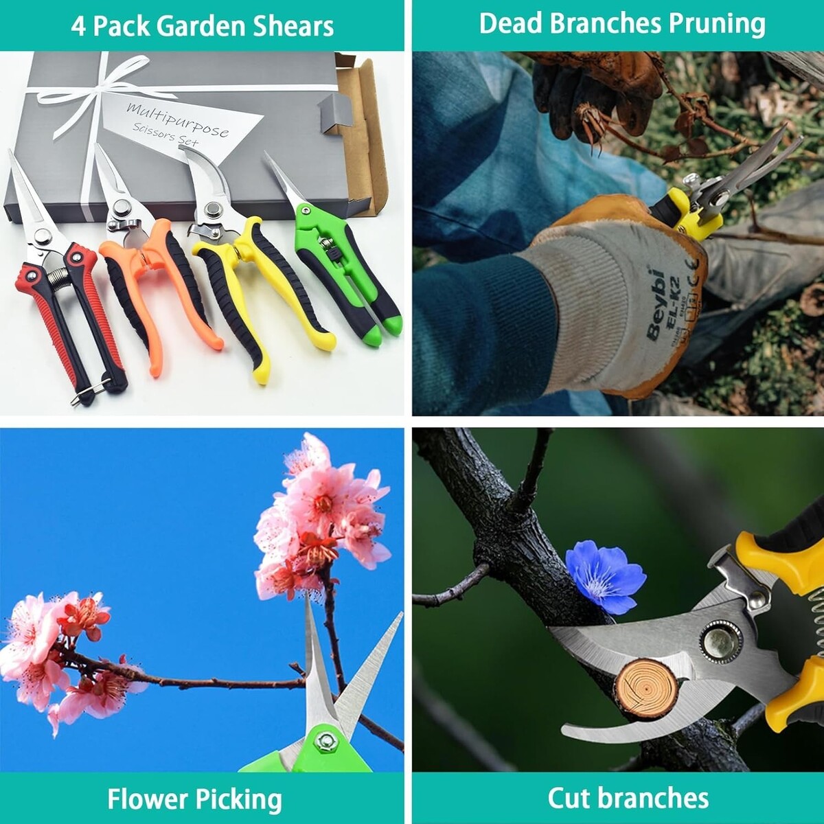 Versatile 4-Pack Pruning Scissors Set - Comfort and Precision for Gardeners