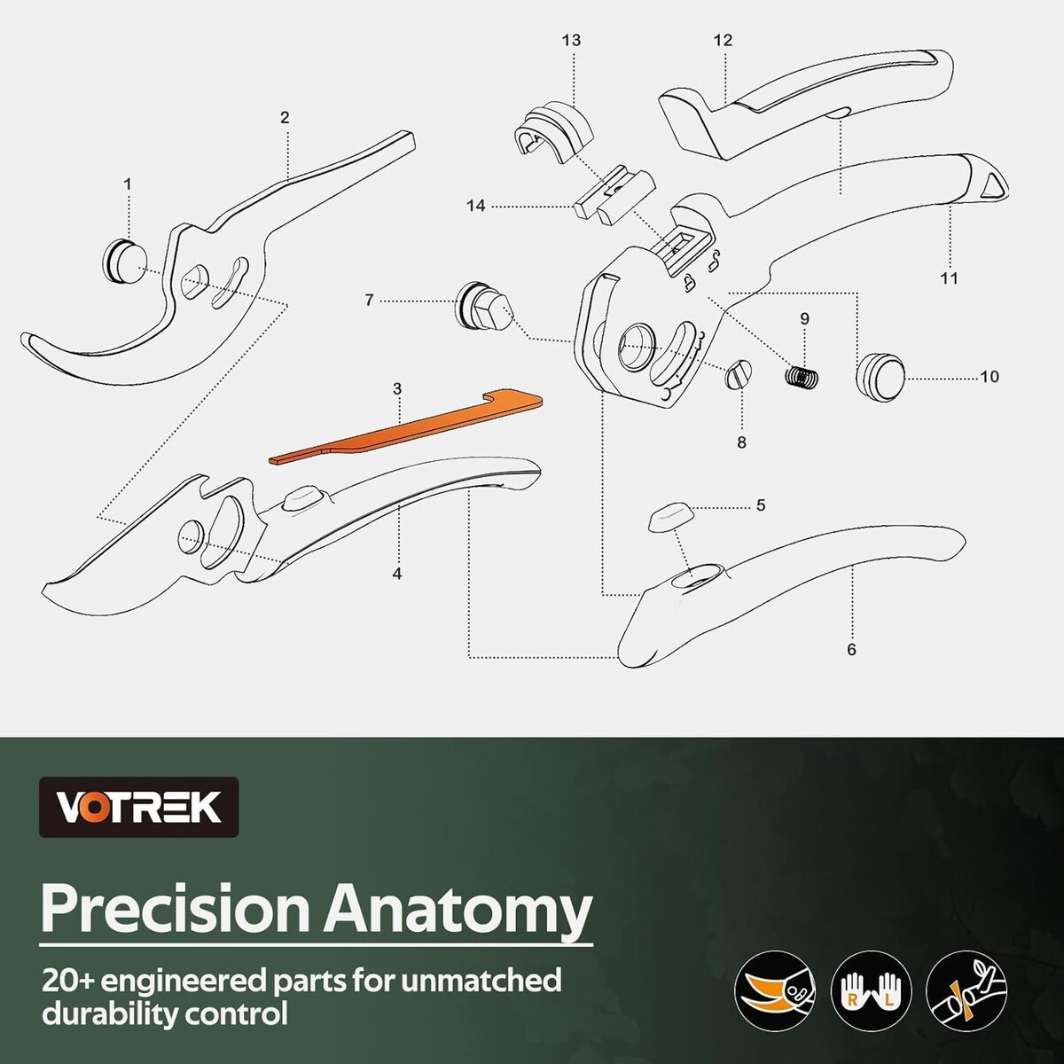 Ergonomic Labor-Saving Design ? Anti-slip TPR coating, comfortable grip curve, and vibration-dampening system minimize hand fatigue and enhance cutting precision.
