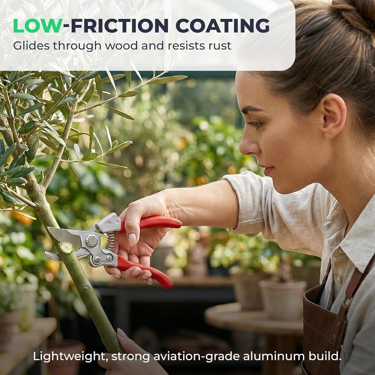 Light Yet Sturdy Build: Featuring die-cast aviation-grade aluminum handles that feel solid without the excessive weight. This makes them ideal for regular garden work, giving you the perfect balance of power and control.