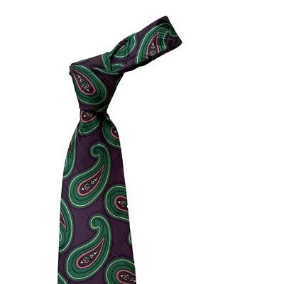 Polo Ralph Lauren Men Retro Silk Multi-Color Paisley Necktie Purple Green USA