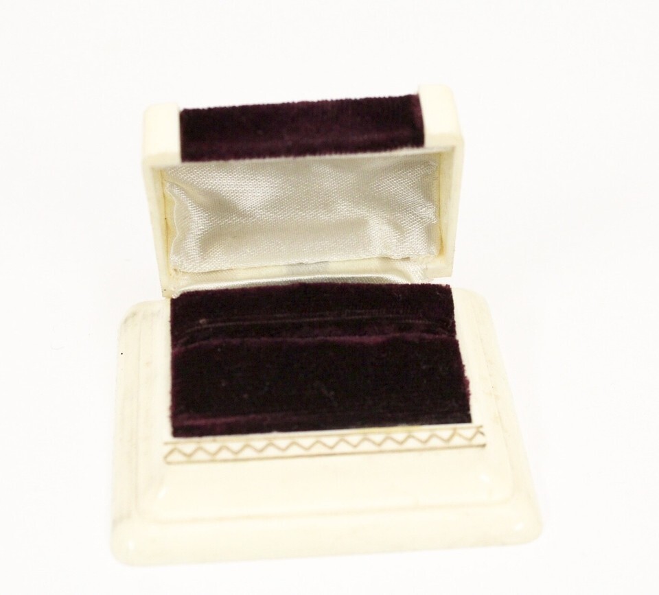 vtg RETRO CELLULOID ART DECO RING BOX DOUBLE WEDDING RING w/ RED VELVET LINING