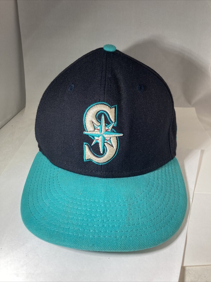 New Era Seattle Mariners 59Fifty Fitted Hat Navy Teal MLB Cap FREE SHIPPING.