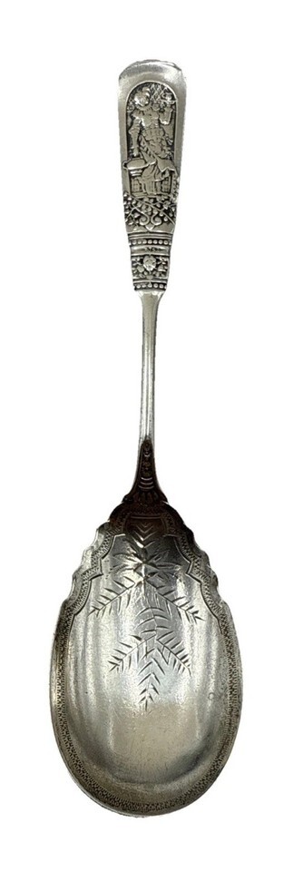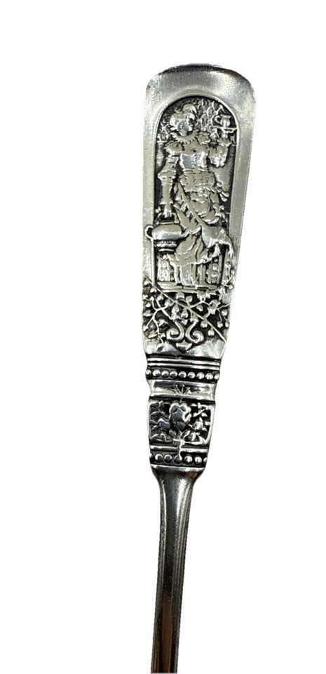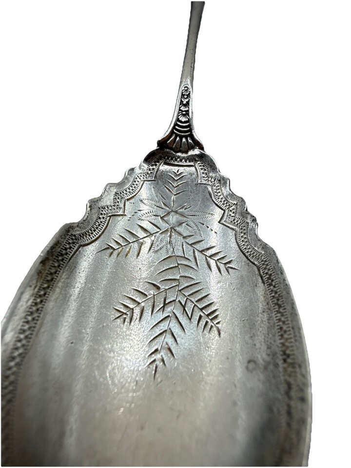 The Gorham Sterling Silver Sugar Spoon in the Fontainebleau pattern from 1880 is a beautiful and elegant piece of Victorian-era flatware. Made in America, this sugar spoon features intricate detailing and is crafted from high-quality sterling silver with a composition of .925. The absence of a monogram adds a touch of versatility, making it a unique and stylish addition to any antiques or silverware collection.