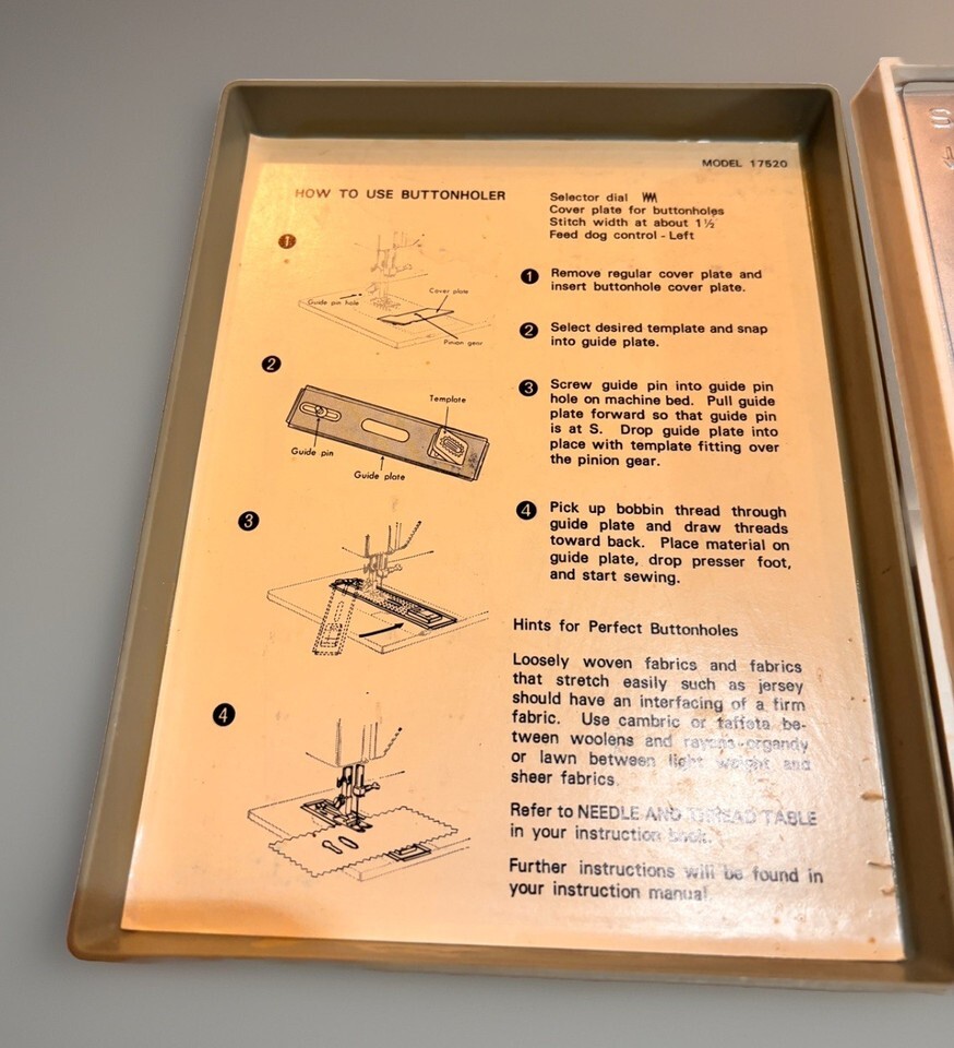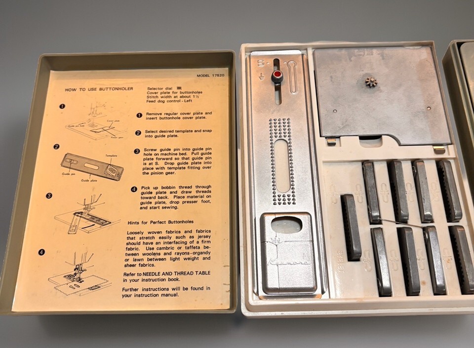 Sears Kenmore 17520 Button Buttonholer Tool Attachment Kit w Cams Templates Set
