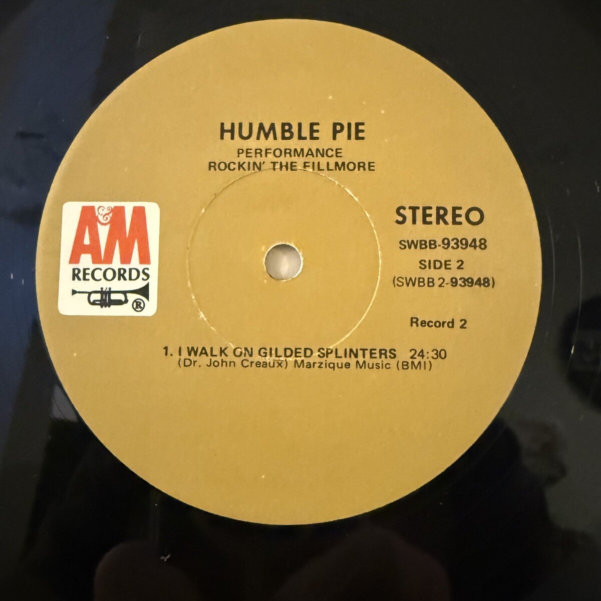 Performance: Rockin' the Fillmore is the 1971 live double-LP by Humble Pie, recorded at the Fillmore East in New York City on May 28?29, 1971. It reached No. 21 on the Billboard 200, #32 in Canada, and entered the UK Top 40.