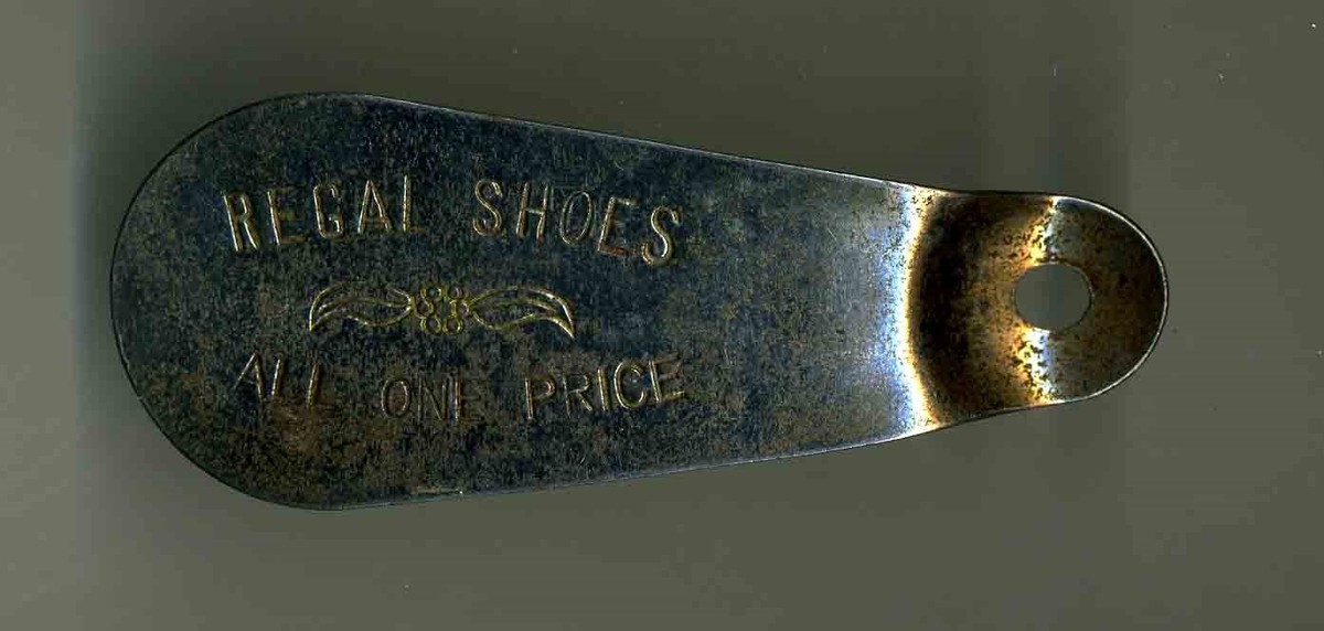 An original metal shoehorn. Regal Shoes Vintage Metal Shoehorn All One Price. About 3 3/4" long. By Sommers. Has signs of age and wear.