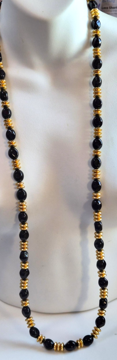 Vtg Signed Dell'Olio Long Gold-tone & Black Glass Bead Necklace 45” Toggle Clasp