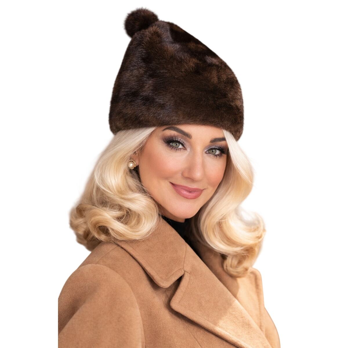 What you?ll love about this Amrose New York dark brown mink hat is the plush, velvety depth of the fur and that charming little pom detail at the crown ? pure mid-century winter glamour with understated Upper East Side polish.