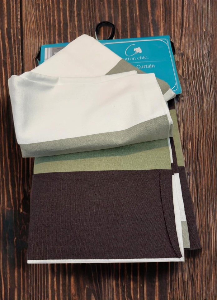 Cotton Chic Shower Curtain 100% Cotton Striped Green Brown White Stripes 72 x 72