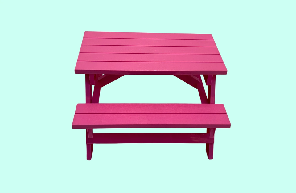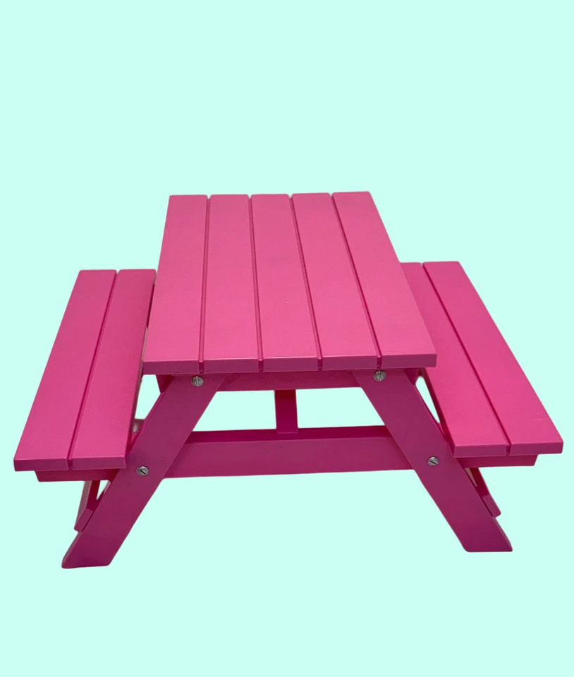 Our Generation Doll (18") Picnic Table Pink Assembled ~7" x 12" x 14" Plastic