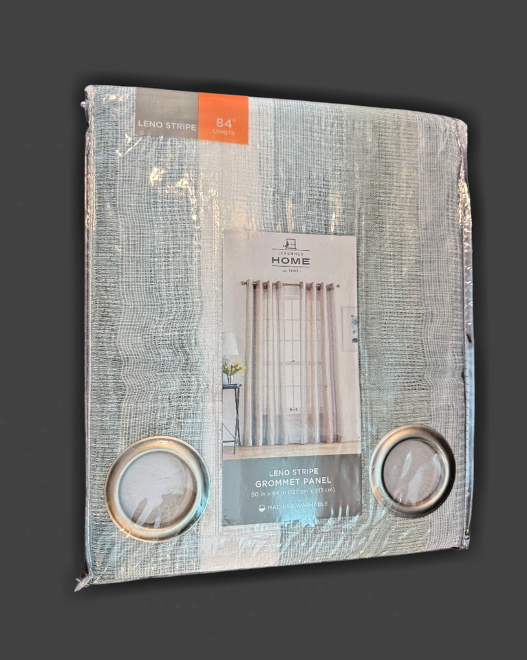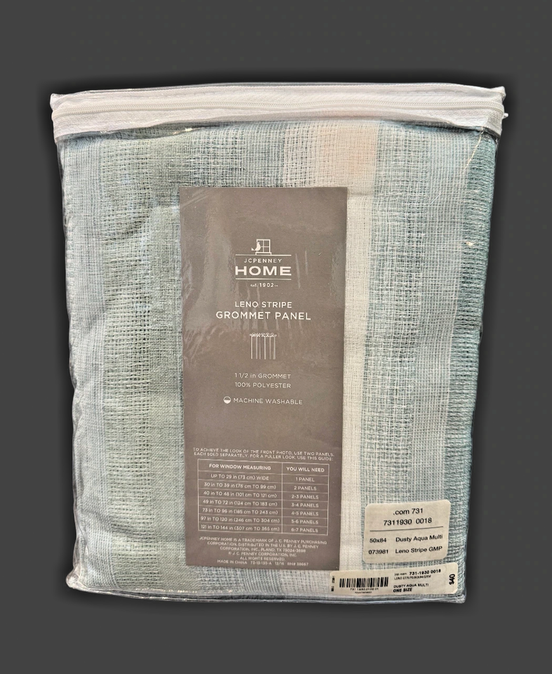 Leno Stripe JC Penney Grommet Panel Sheer Dusty Aqua Striped 50" x 84" Coastal
