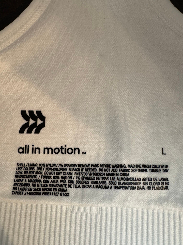 All in Motion Seamless Racer Bra Women L (36C, 38B, 36D, 38C) White Nylon-Span