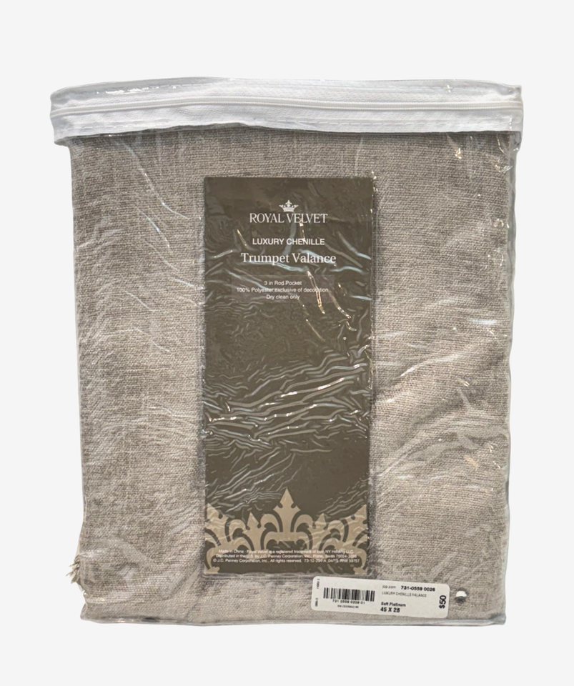 Royal Velvet Trumpet Valance 45" x 28" Luxury Chenille Soft Platinum Tassels