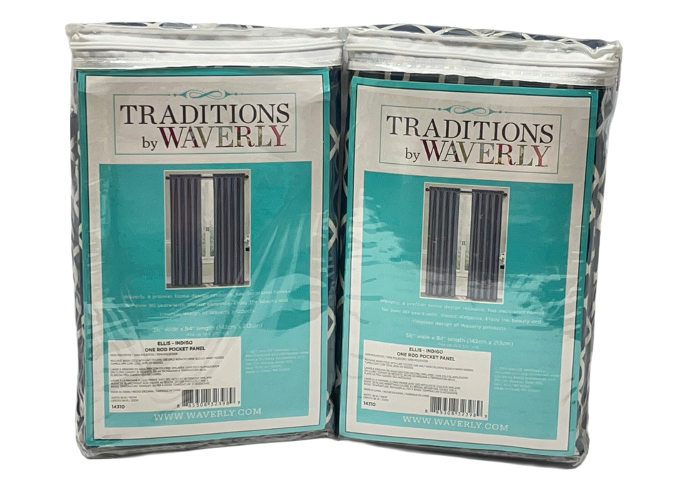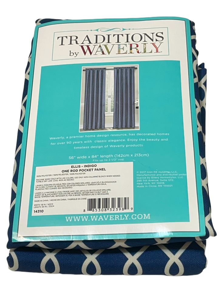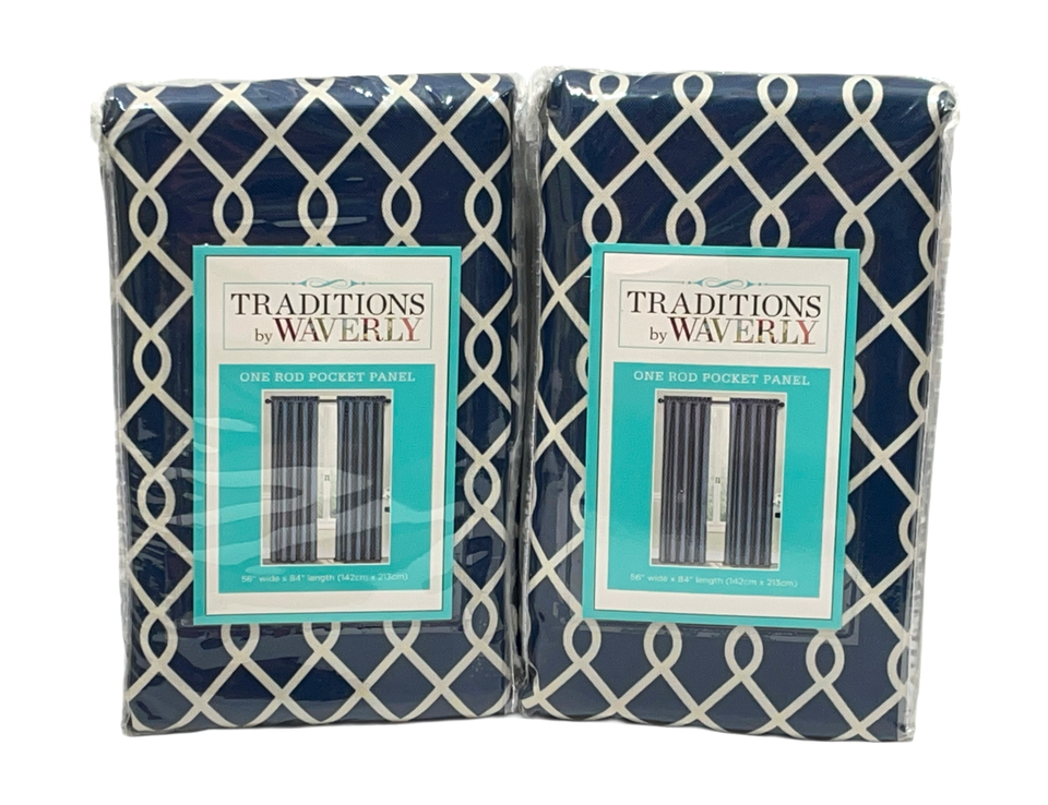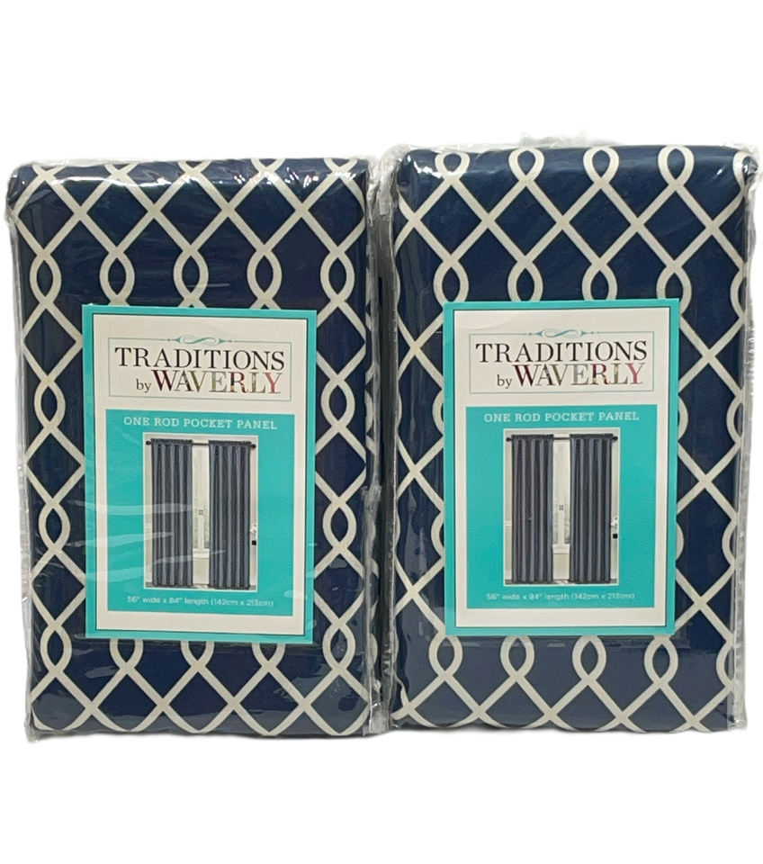 Waverly Traditions Ellis Rod Pocket Panel Pair (2) 56 x 84" Indigo Trellis 14310