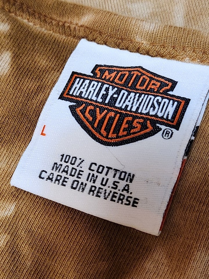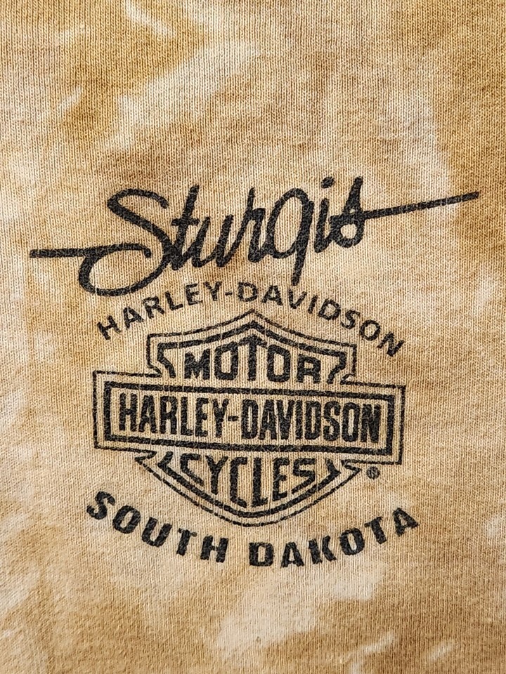 Harley Davidson Women's Large T-Shirt Sturgis Brown Beige Tye Dye Sleveless EUC