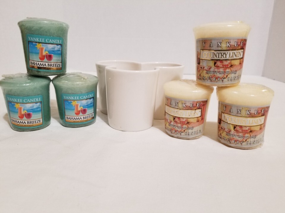 Yankee Candle Votive 3 Wick 3 Votive Holder + 6 Votives Linen & Bahama Breeze