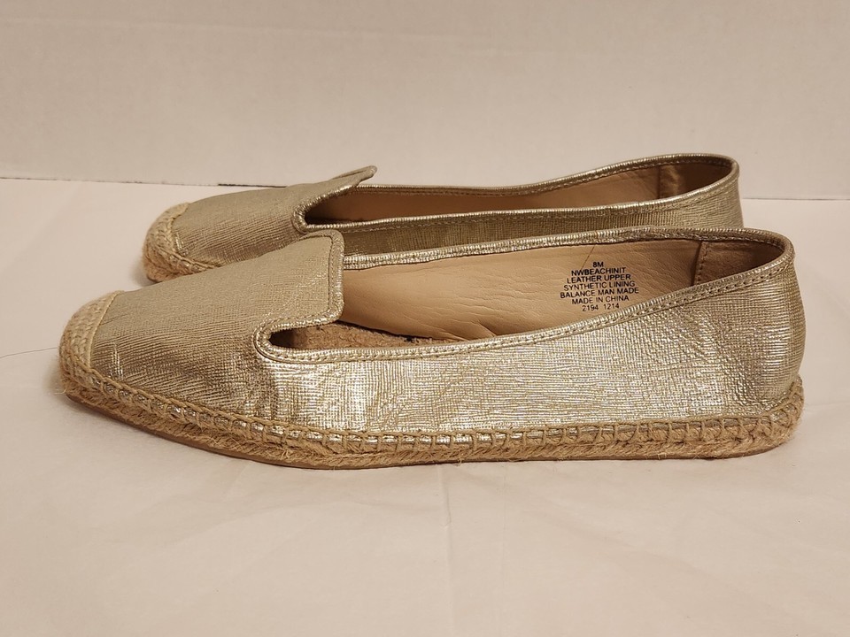 Nine West Womens 8M Espadrille Beach Flats Leather Jute Gold Tan NW Maxy MED WID