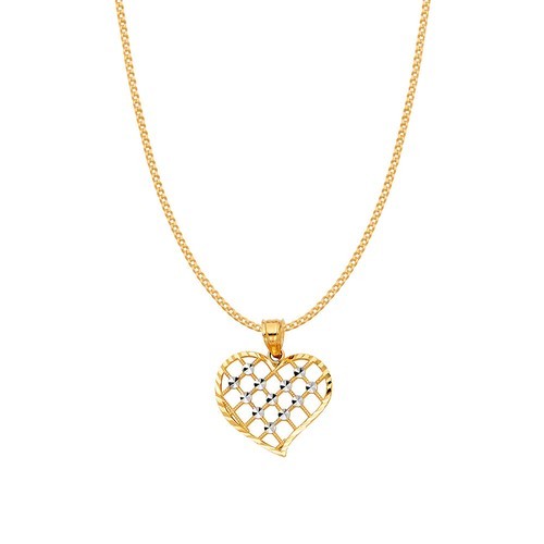 Genuine 14k Two-Tone Gold 0.78" Cross Hatch Heart Pendant Necklace 16" to 22"
