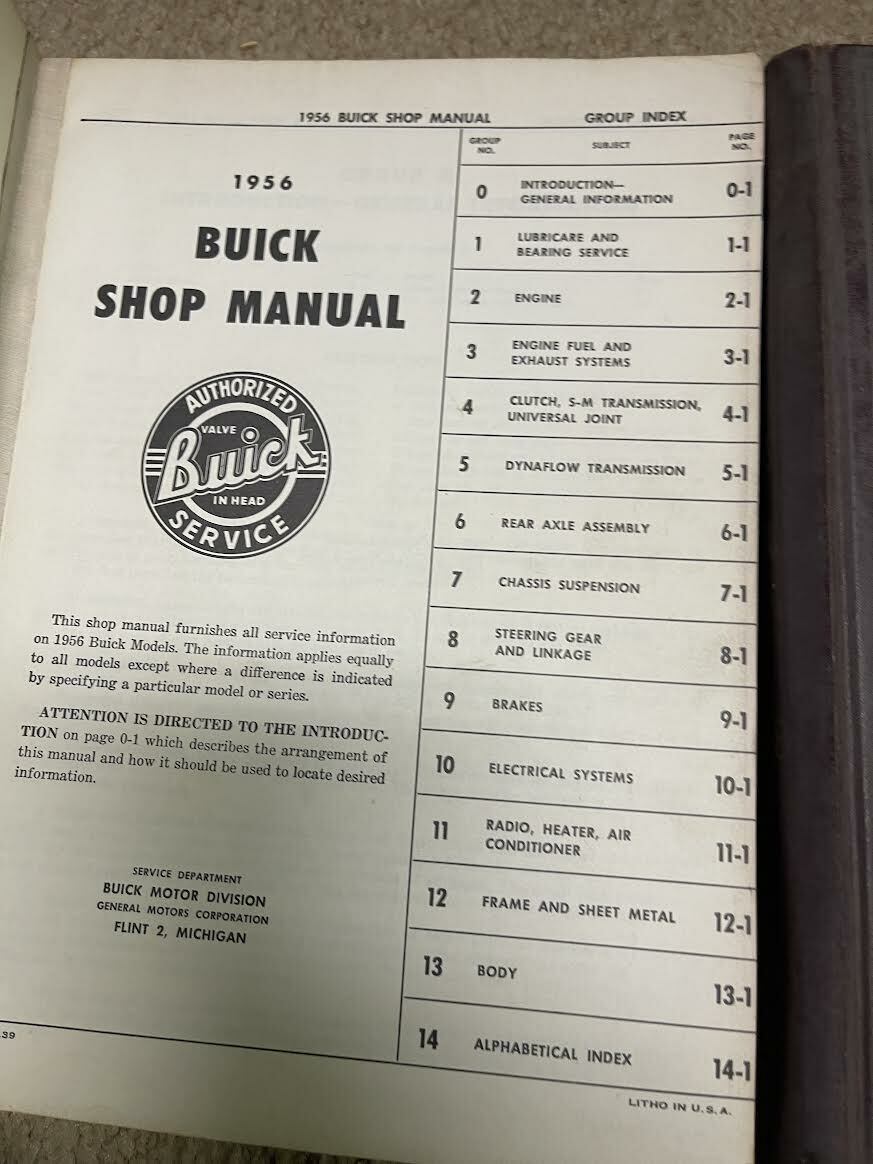 1956 Factory Buick Service Manual Motors Flat Rate Repair Manual