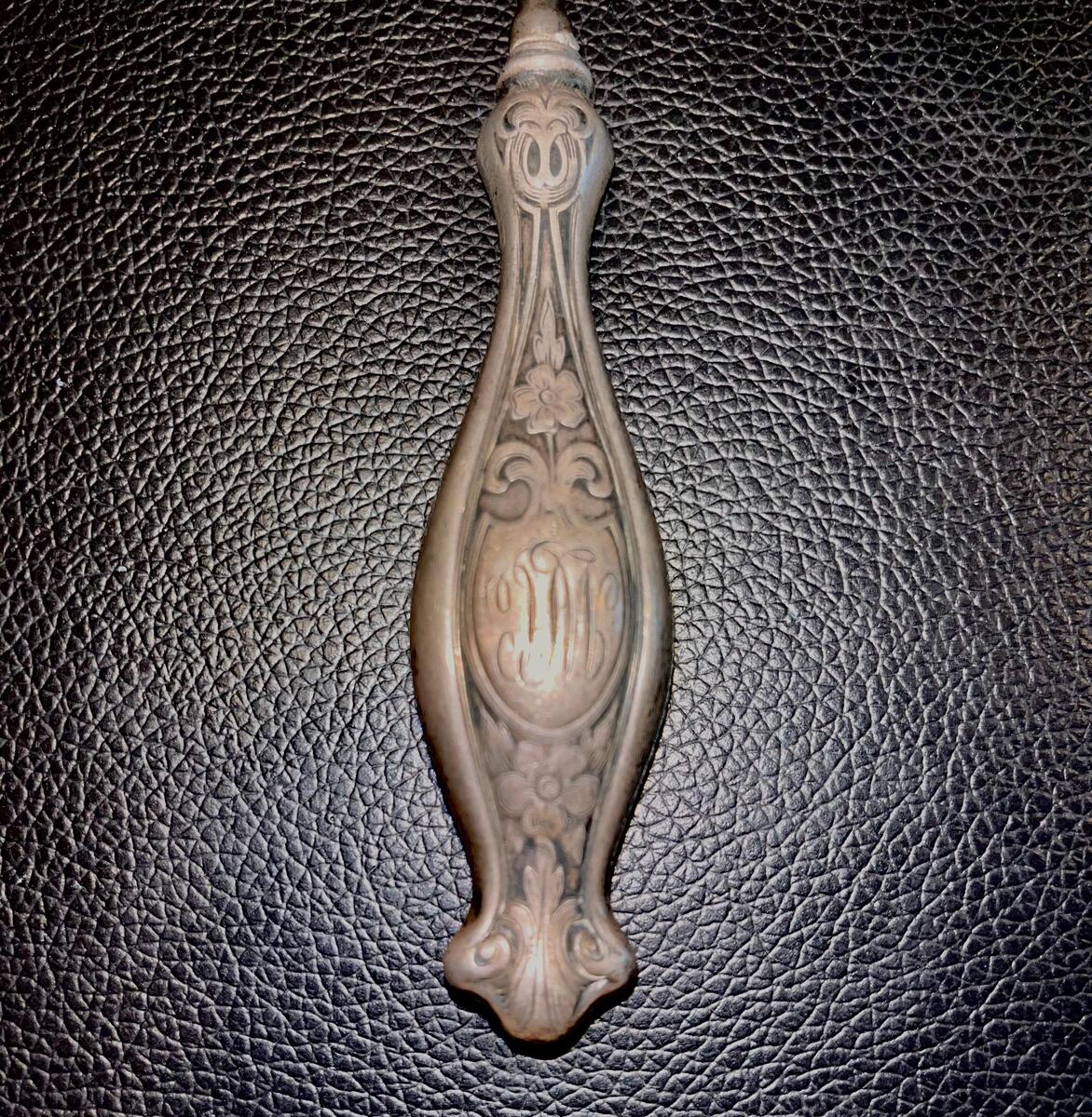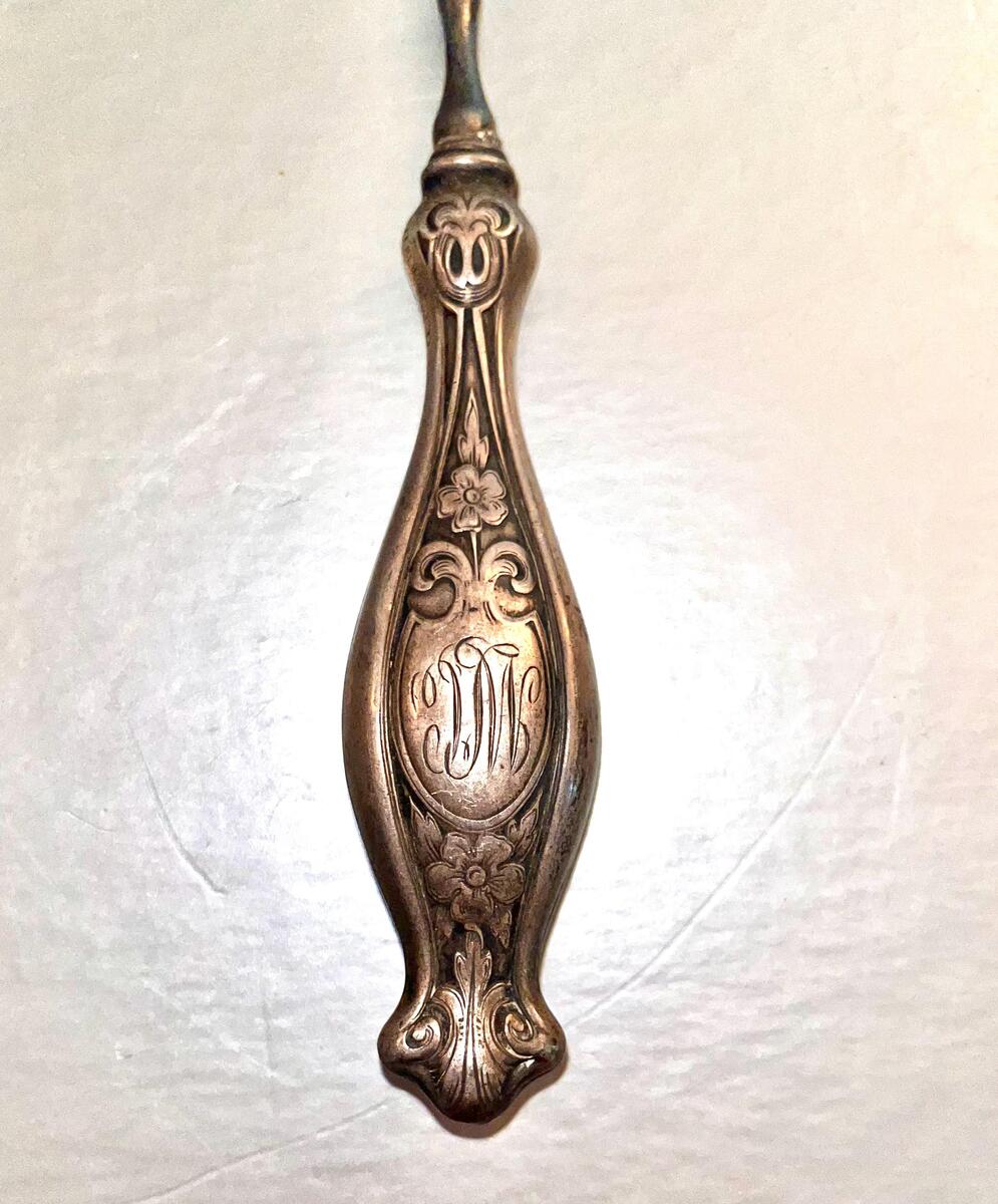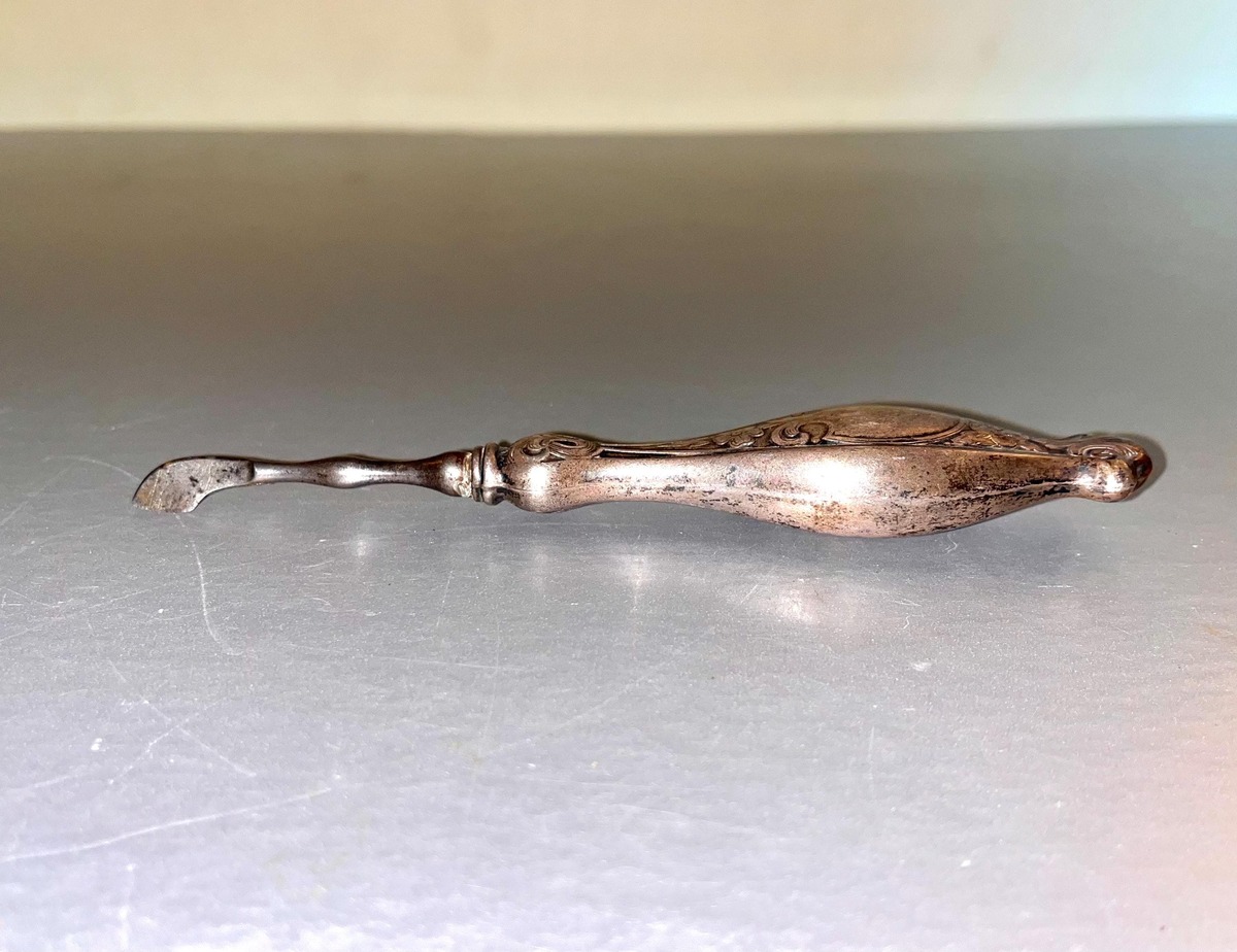 Here we a beautifully preserved 1800's manicure implement. These were commonly used in the late 1800s to early 1900s, especially during the Victorian and Edwardian eras. The “D” hallmark belongs to Dominick Haff, a well-known American silversmith company founded in 1872. They used a fancy script “D” as part of their marks. They were later absorbed by Reed Barton around 1928.