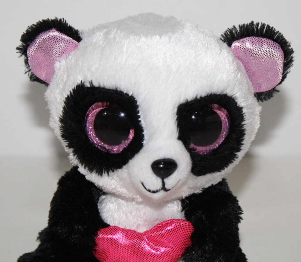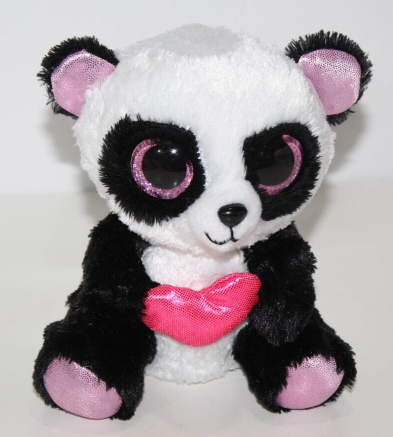 Ty, Beanie Boos, Cutie Pie, Valentine's Heart, Panda Bear, Approx 6 inch, Plush, 2015, Pink Glitter Big Eyes, Stuffed Animal, Soft Toy