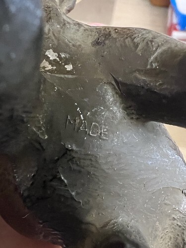 Antique Cold Painted Elephant Figure 5 x 3.5 inch w Tusks Just a Lovely Statue some paint wear AND PLEASE NOTE it is MUCH much darker in person than in the photos the details are sweet there is some paint flakes off but so sweet. There is a mark under his arm but only Made In.....