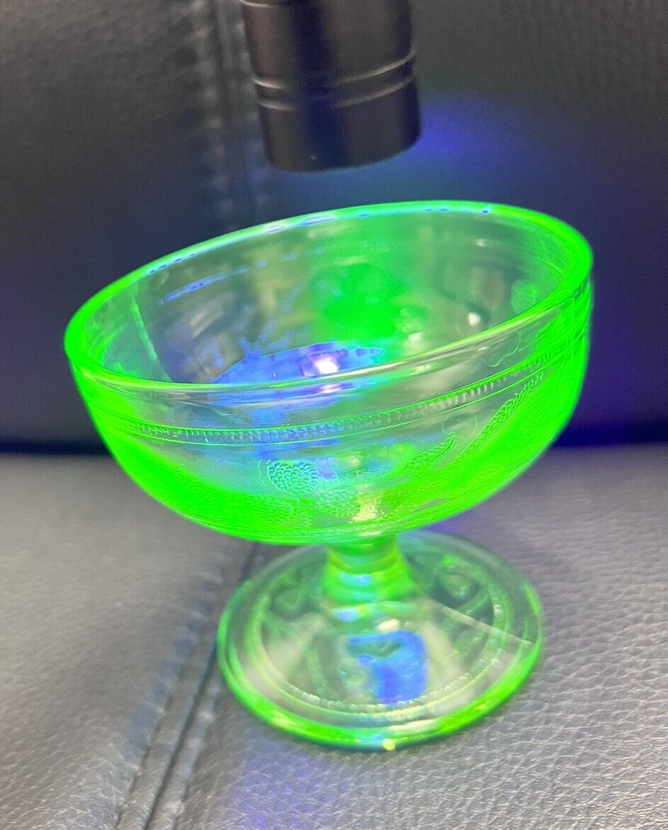 Vintage Depression Era Green Uranium Hazel Atlas CLOVERLEAF Sherbet Dish