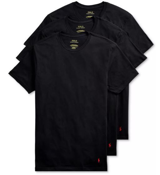 3 POLO RALPH LAUREN MENS COTTON BLACK CREW T-SHIRTS UNDERSHIRTS S M L XL XXL NWT
