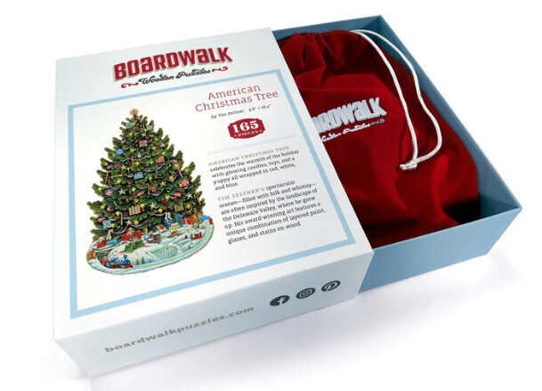 Aztec Calendar 500 Piece Round Shaped Jigsaw Puzzle 19.4" D Dowdle Folk Art Jigsaw Puzzle CollectionAztec CalendarItem #: 117.1Completed Size: 19.4 x 19.4 inches (49 x 49 cm)Artist: Eric DowdleSee the world like never before through the whimsical Dowdle folk art jigsaw puzzles based on paintings of folk artist Eric Dowdle. His unique style captures the heart and soul of us all. People, places, and heritage come together beautifully in each Dowdle jigsaw puzzle piece of this spectacular collection; to be cherished for years. The Aztec calendar consists of two calendars, one for a day count (tonalpohualli) and the other for a year count (xiuhpohualli). The xiuhpohualli was for agricultural purposes and telling them the best time to plant their crops, and the tonalpohualli was the religious calendar and told them when to consult the God's. This painting is unique in the Dowdle Folk Art collection in that it is Eric's only round painting and puzzle.Boardwalk Wooden PuzzlesAmerican Christmas TreeArtist: Tim ZeltnerMeasures: 9.5 X17.9 inches165 piecesBoardwalk Wooden Puzzles are carefully designed and made of premium materials. Each puzzle is hand finished and made completely in the USA. Loads of fun and available in many sizes and shapes.We love trees and we love things made of wood. As you know, Boardwalk puzzles are crafted from Baltic Birch wood, a renewable natural resource. With every Boardwalk Puzzle sold, we are proud to contribute financially to the reforestation of our planet and the beautification and protection of urban areas. It is estimated that we need to plant three billion trees in order to reverse global warming. Your Boardwalk Puzzle purchase helps in this effort, one tree at a time.Thank you for supporting Boardwalk Puzzles and in turn helping to plant more beautiful trees.