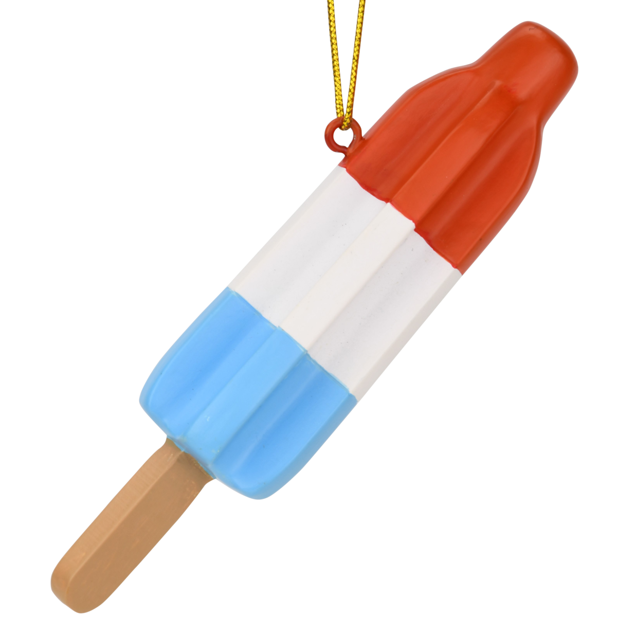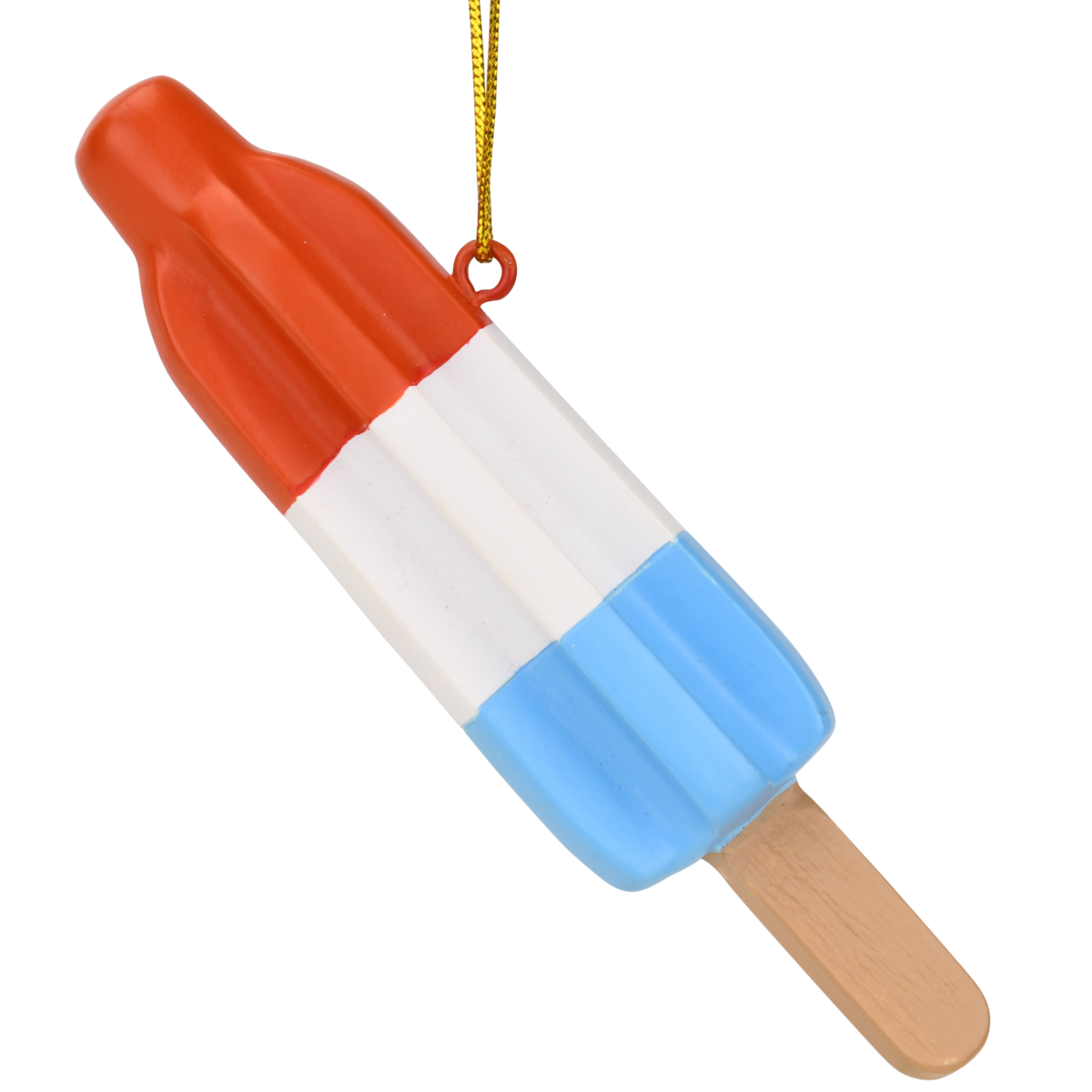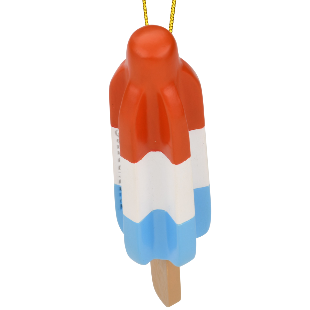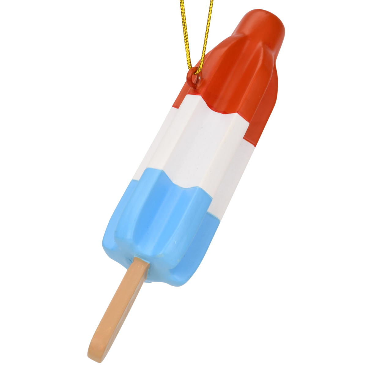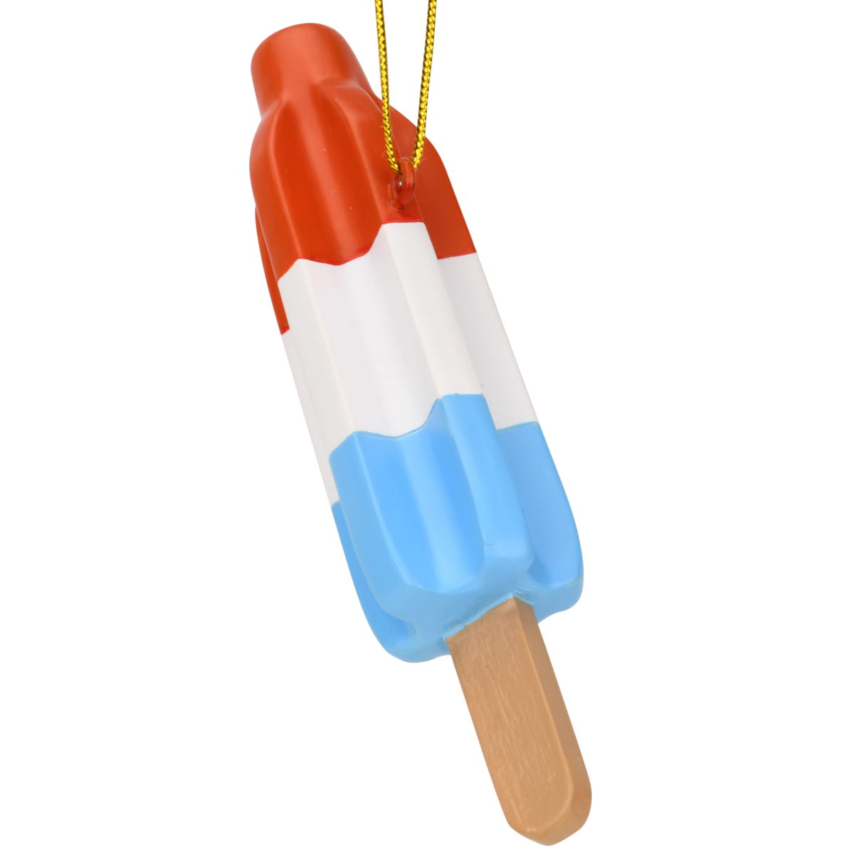This Christmas in July ornament is 4" x 1" - Making it a great size for any xmas Tree. Vibrant red, white, and blue stripes evoke the patriotic and refreshing essence of the original popsicle.