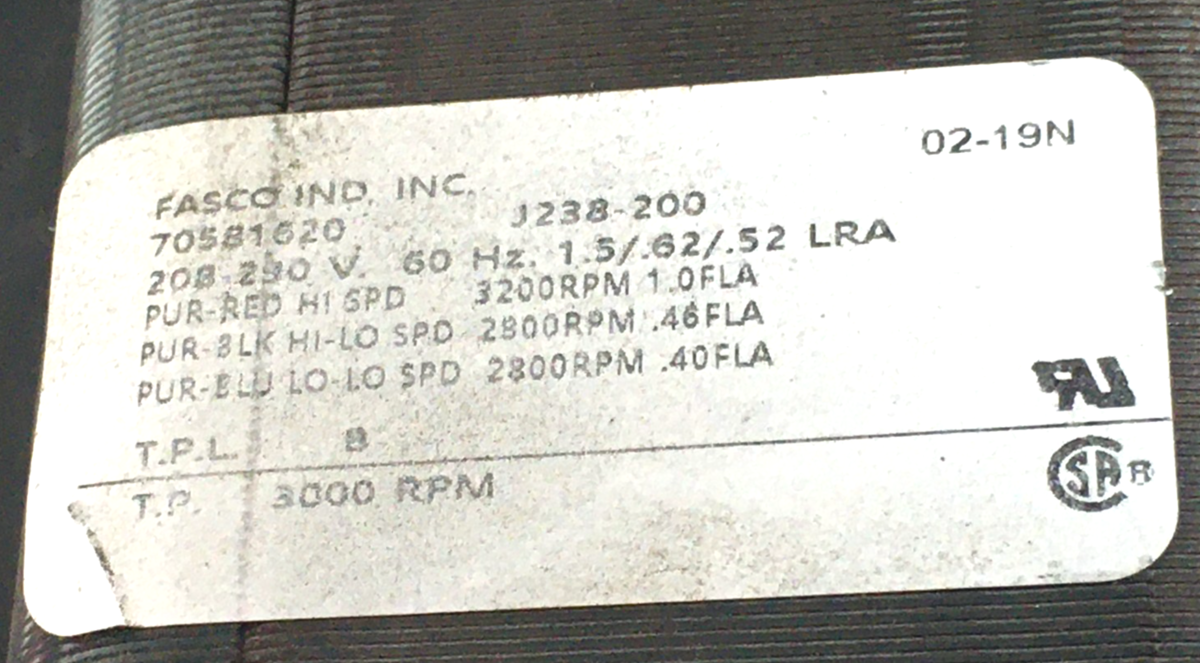 This is FASCO 70581620 Goodman 0131G00001 Furnace Draft Inducer Motor J238-200 208/230V 3000 RPM used part.