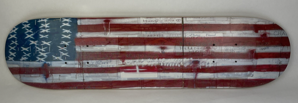 Dystopian American Flag Punk Rock Hunger & Peace Art Mini Skateboard Deck 7"