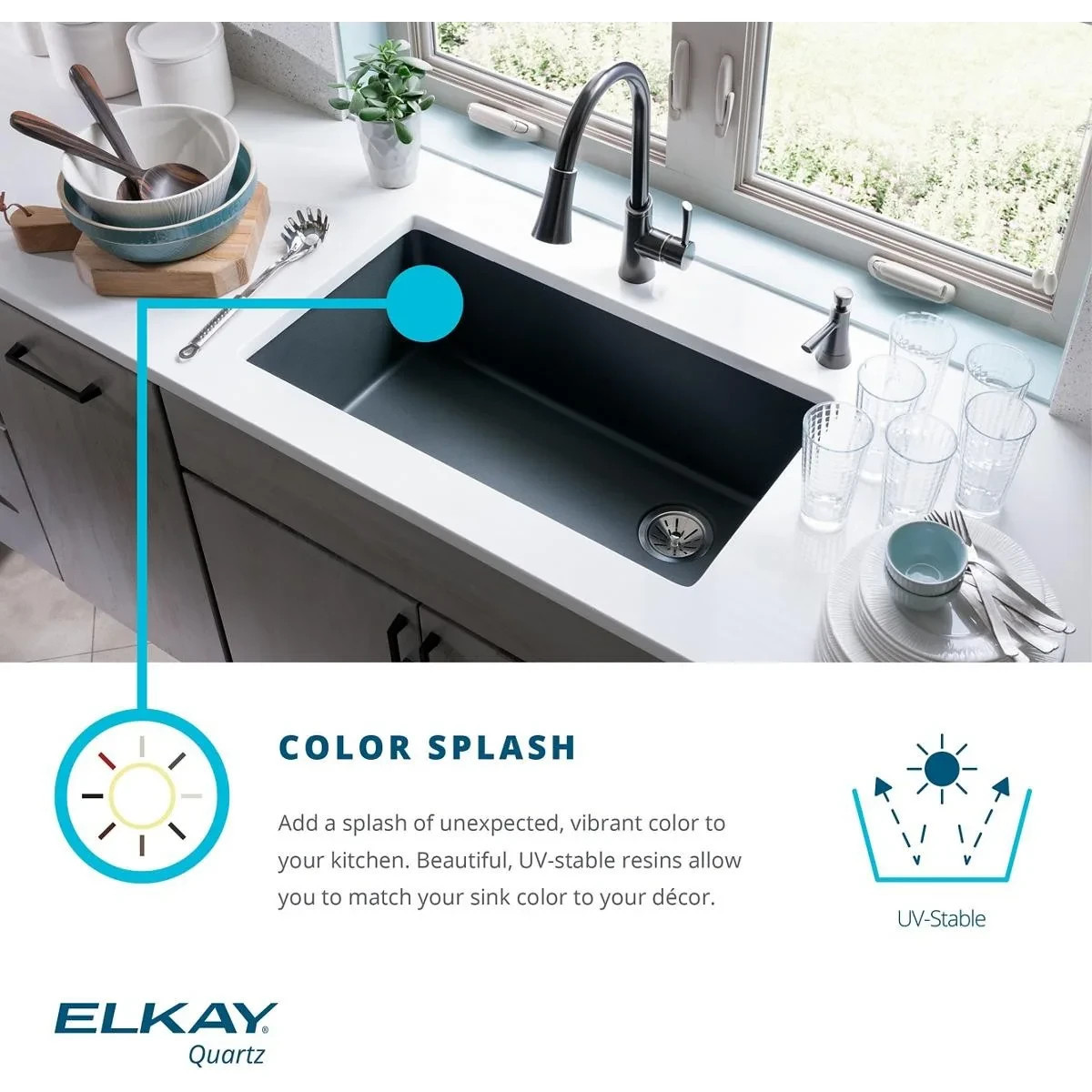 Molded from fine quartz sand to resist banging, chipping and scratches, this sink is heat safe up to 535 Fahrenheit.