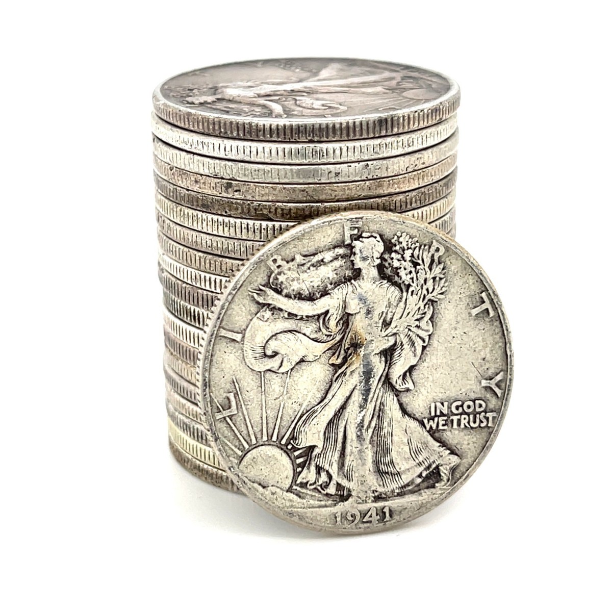 1917 - 1942 Roll of Walking Liberty Half Dollars, 20 Coins, Circulated