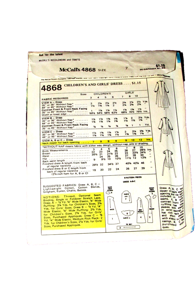 McCALL'S PATTERN 4868 girl's size 7 dress and 44 similar items