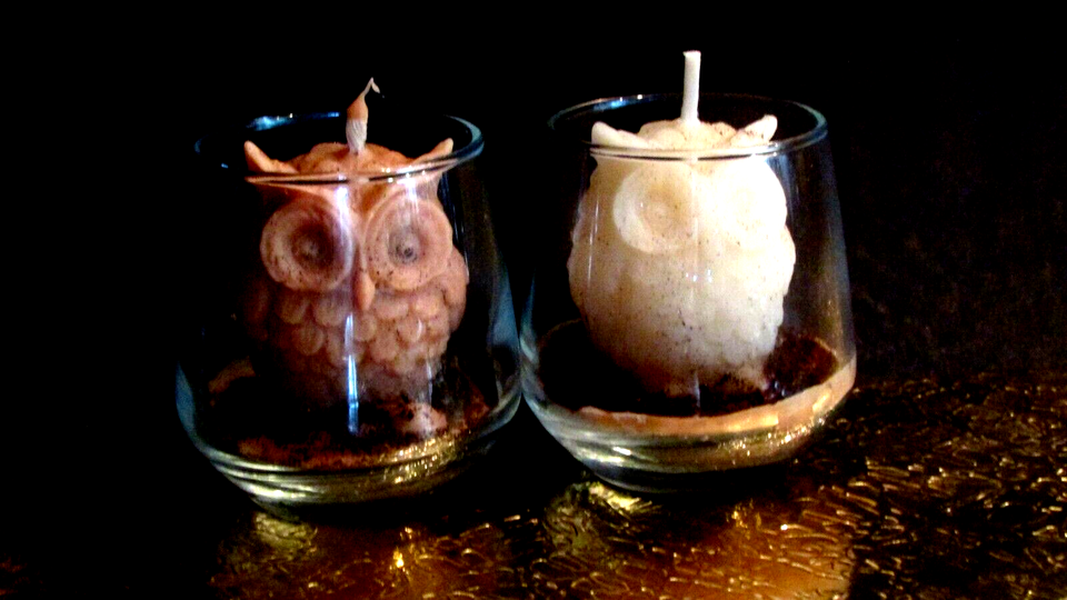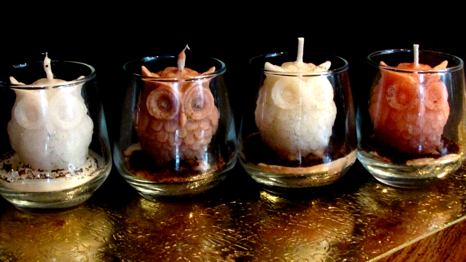 handmade small OWL CANDLES in small glass and 50 similar items