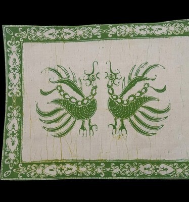 Block Print Placemats Set of 6 Green Birds Roosters Peacocks Batik Style India
