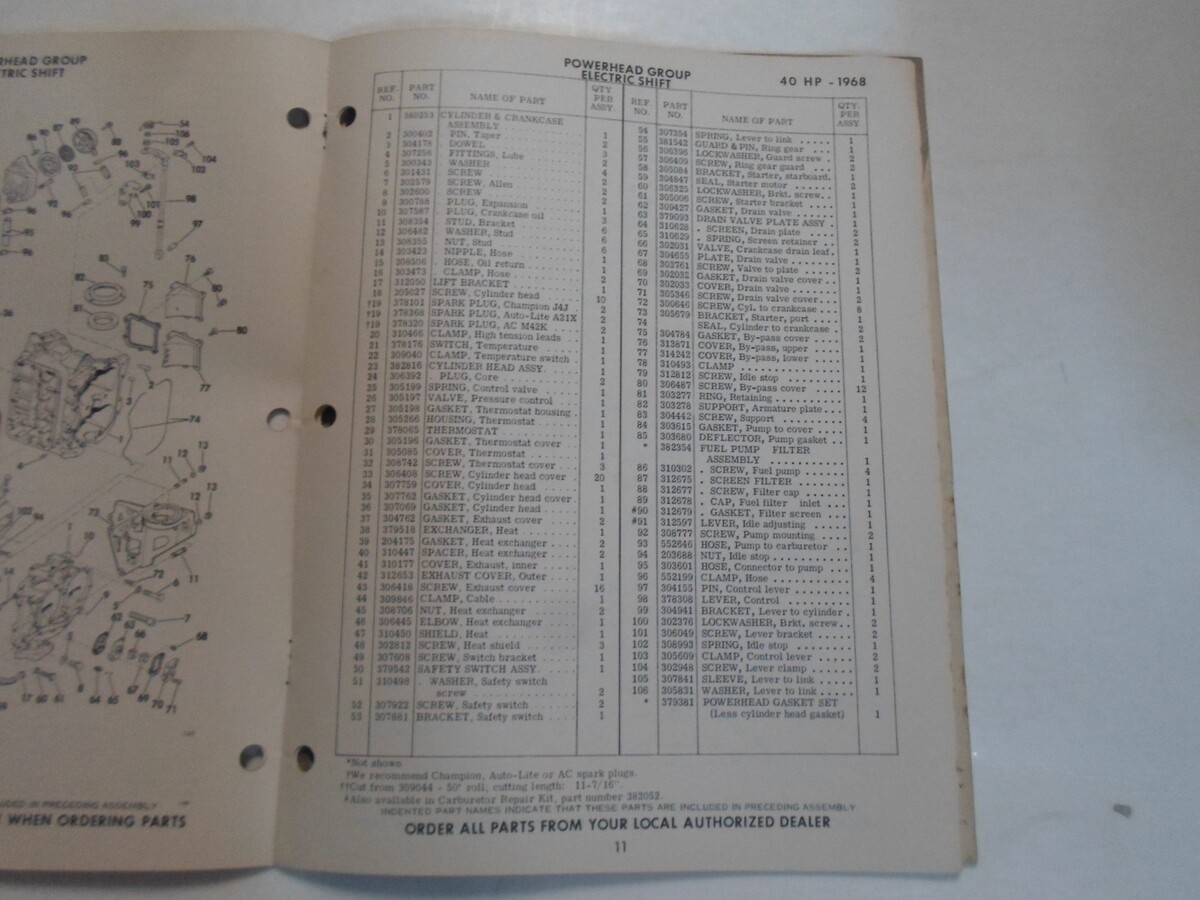 1968 Evinrude 40 LARK 40872D 40873D C A Parts Catalog Manual MINOR STAINS OEM 68