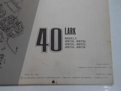 1968 Evinrude 40 Lark 40872D 40873D C A and 48 similar items