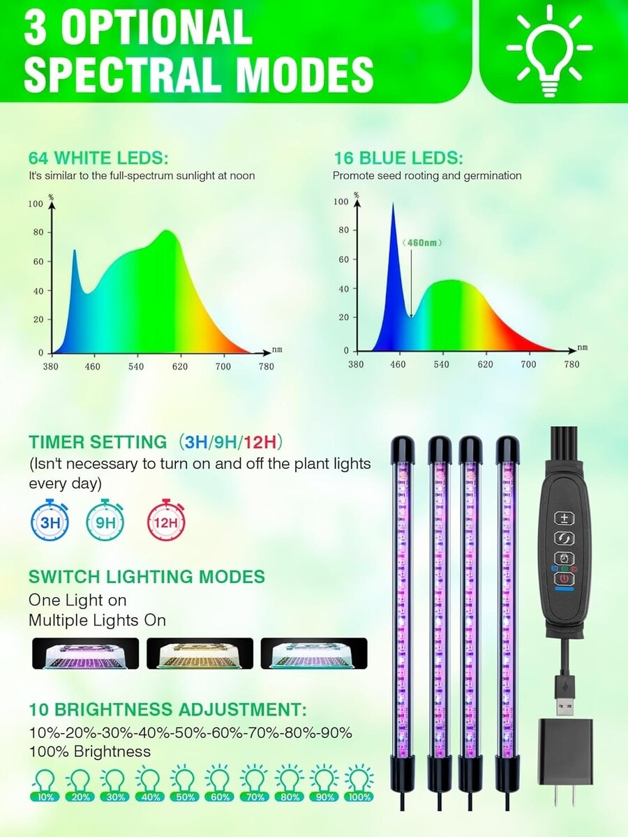 Adjustable brightness and timer functions cater to the specific light requirements of your plants at various growth stages.