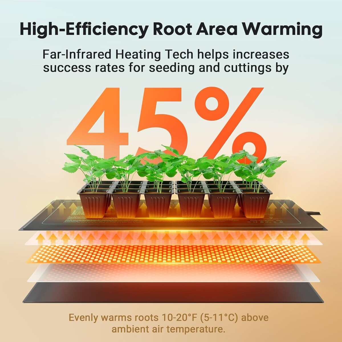 Maintains Optimal Root Zone: Consistently regulates temperature within the ideal range of 68-86F, essential for seedling starting and cutting propagation.