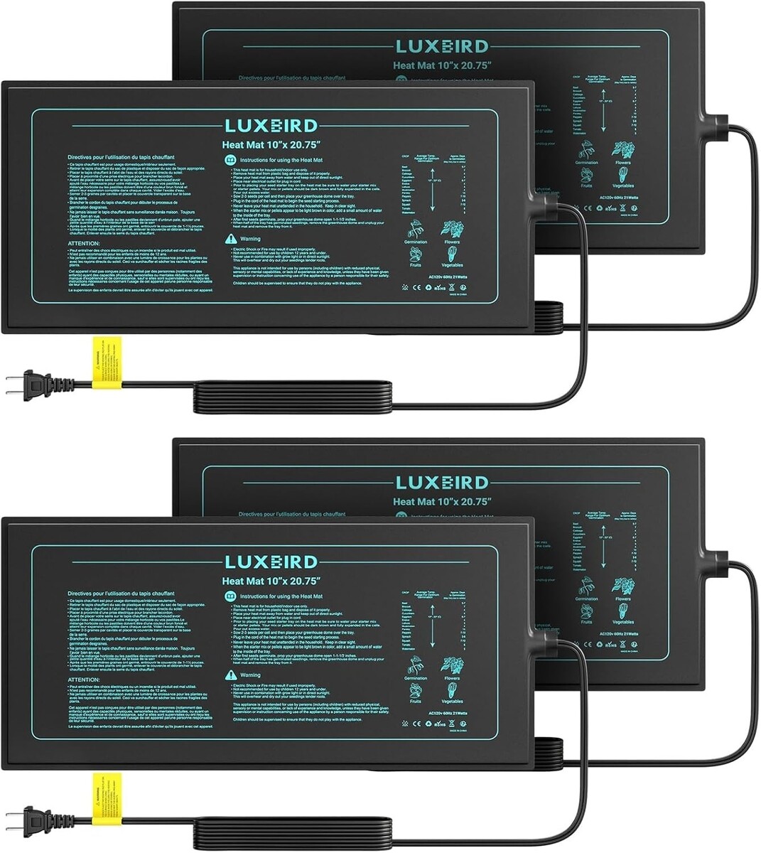 4-Pack Seedling Heat Mats 10x20.75? - MET Certified for Optimal Growth