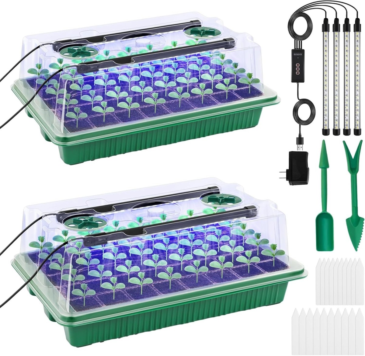 Complete Gardening Starter Kit: 2-Pack Seed Trays with Grow Lights & Accessories