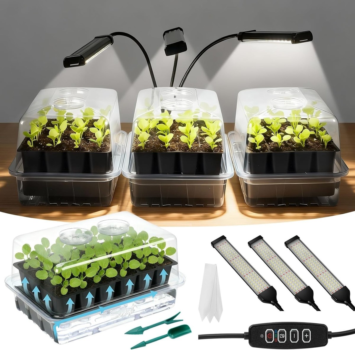 Effortless Seed Starting: 72 Cell Self-Watering Trays with Grow Light Timers