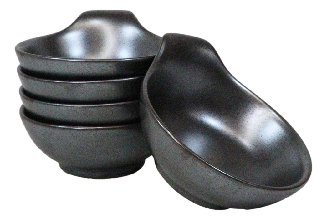 Pack Of 5 Tetsu Kesho Black Small Ponzu Sauce Miso Soup Bowls With Handle 5oz
