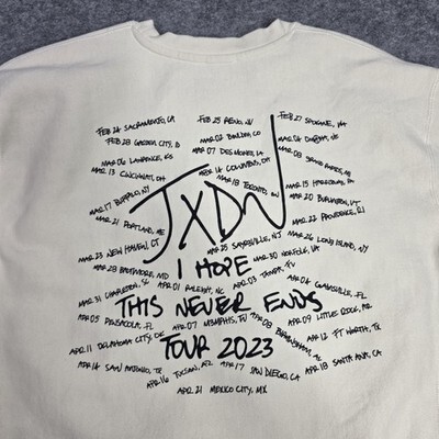 Back graphic: "JXDN I Hope This Never Ends Tour 2023" with tour cities/dates